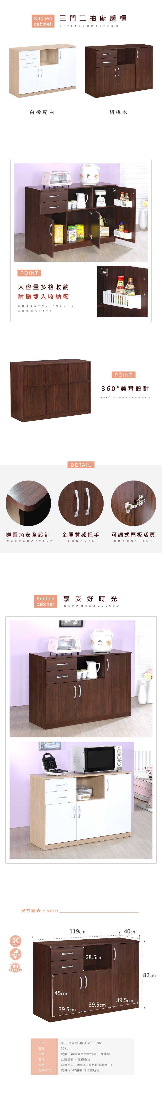 《HOPMA》美背簡約三門廚房櫃 台灣製造 電器櫥櫃 儲藏收納置物 微波爐櫃-淺橡(漂流)木配白