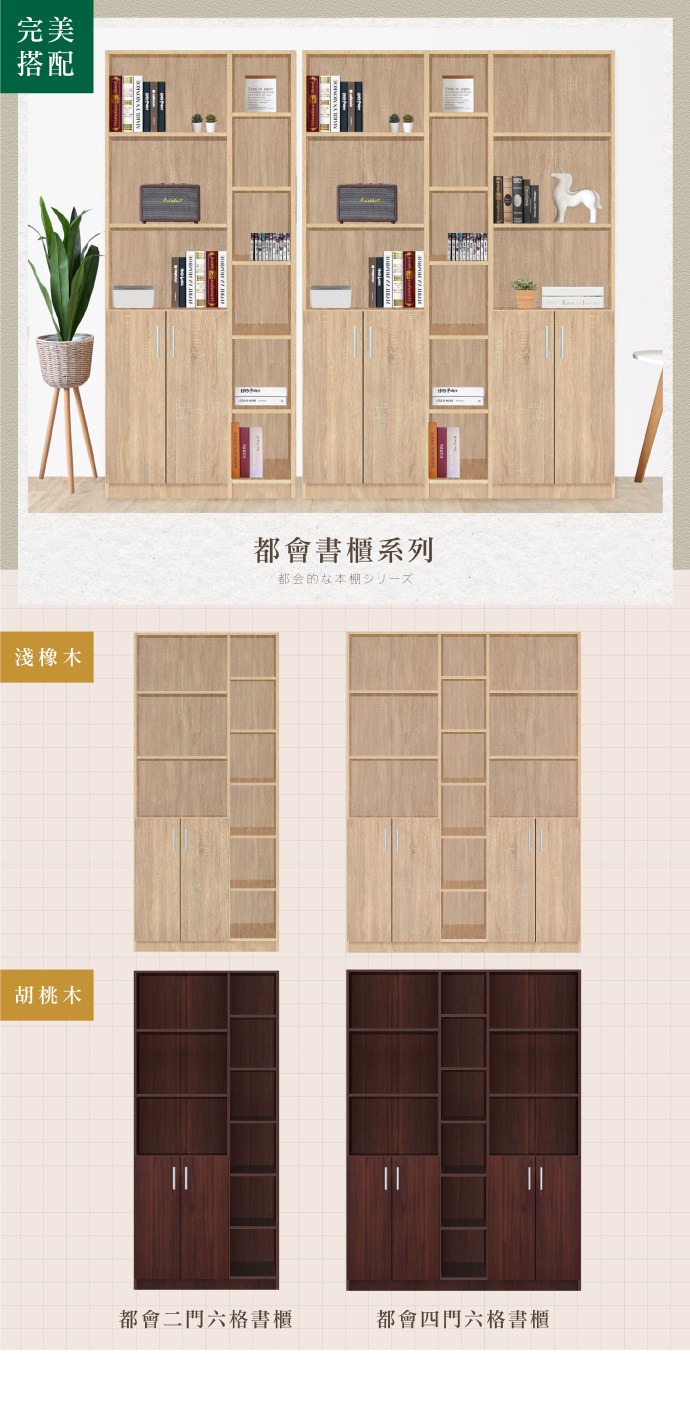 《HOPMA》都會四門六格書櫃 台灣製造 儲藏收納層櫃 玄關置物櫃-淺橡(漂流)木
