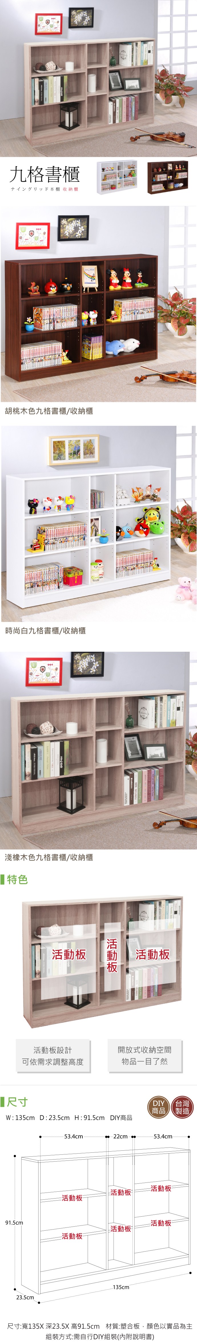 《HOPMA》九格書櫃 台灣製造 收納櫃 儲藏櫃 書櫃 置物櫃 玄關櫃 門櫃 書架-淺橡(漂流)木