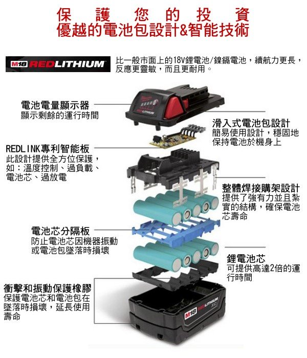 Milwaukee 18V鋰電專用電池5.0AH M18B5