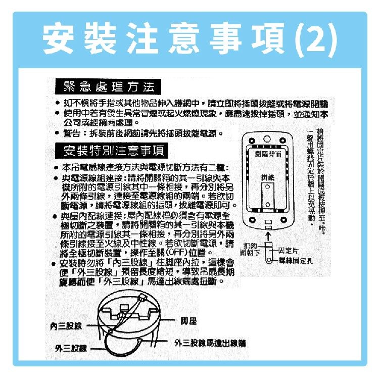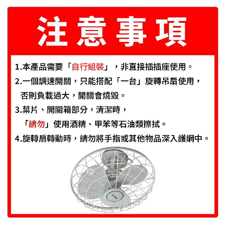 2.一個調速開關,只能搭配「一台」旋轉吊扇使用,