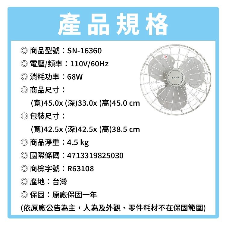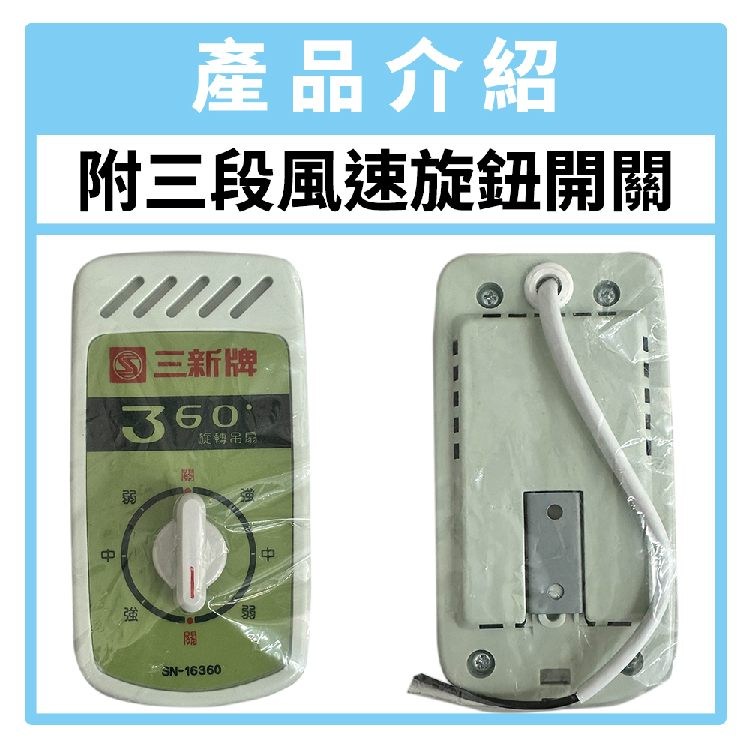 三新牌 16吋360度立體自動旋轉吊扇 SN-16360