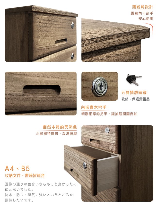 【桐趣】職人日誌實木5抽A4文件櫃-胡桃