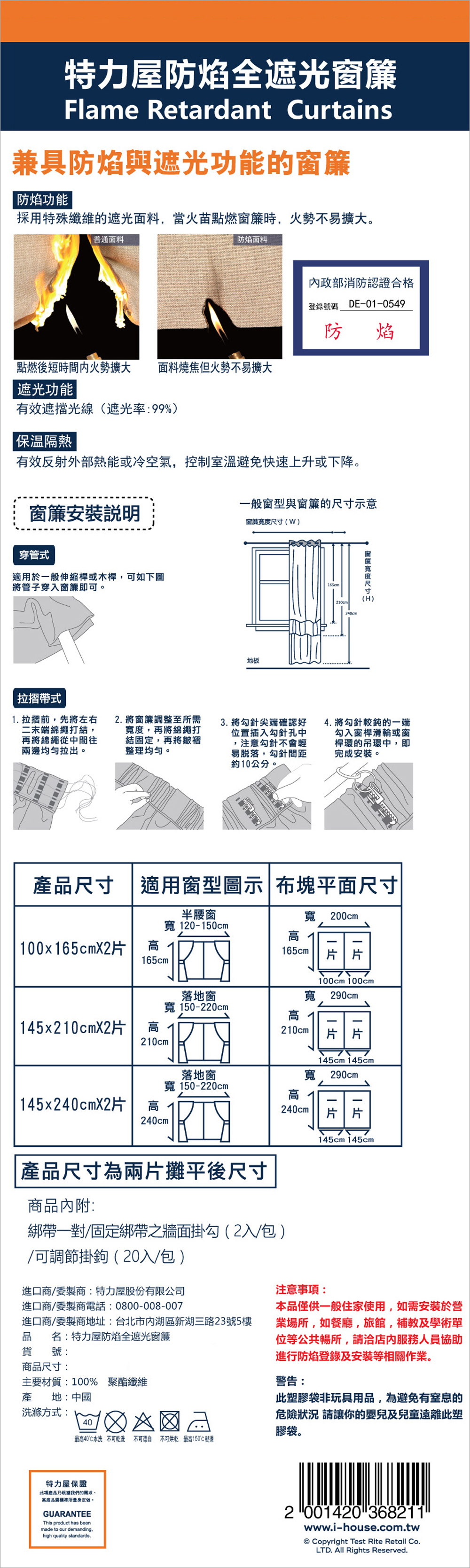 (3) 若要車縫防焰標籤,需另外報價相關加工費用,恕請改至全省特力屋實體店窗紡區進行選購。