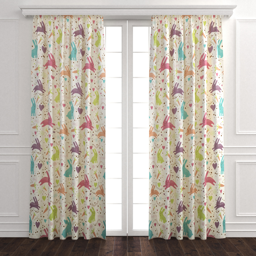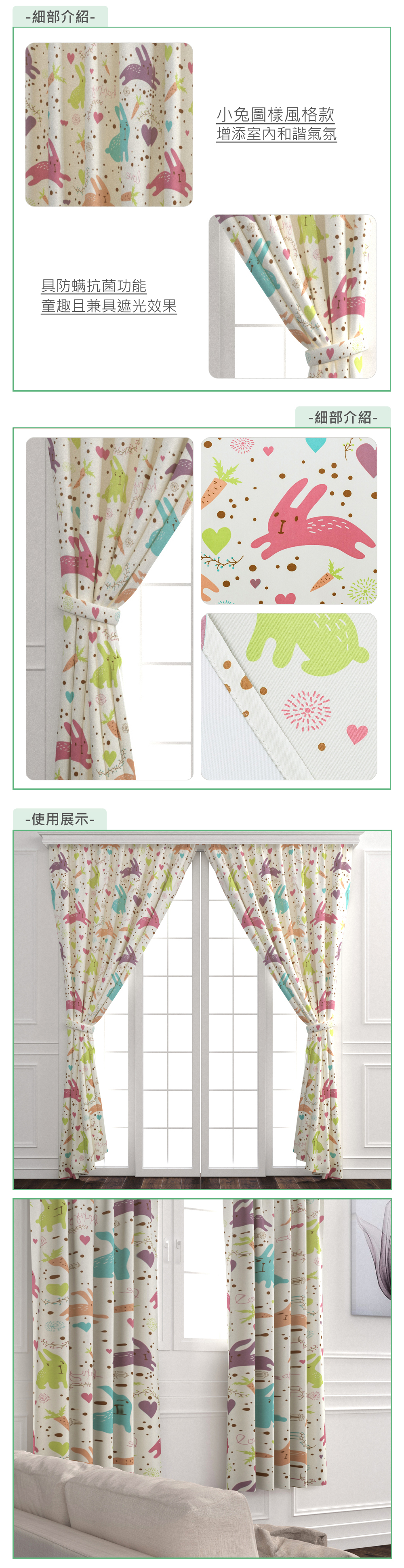 EZSO 簡易訂製小兔防螨抗菌遮光窗簾 兩片式 寬420x高210cm以內