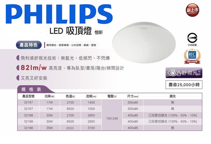 飛利浦吸頂燈有多種尺寸及不同燈殼設計,適用於多種不同空間,並易於匹配各式裝潢風格。獨特勻亮科技燈罩,讓出光均勻外還可有效降低眩光,達舒視光等級。飛利浦吸頂燈擁有卓越的光效,並通過光生物安全 RG0 認證,安全又可靠!