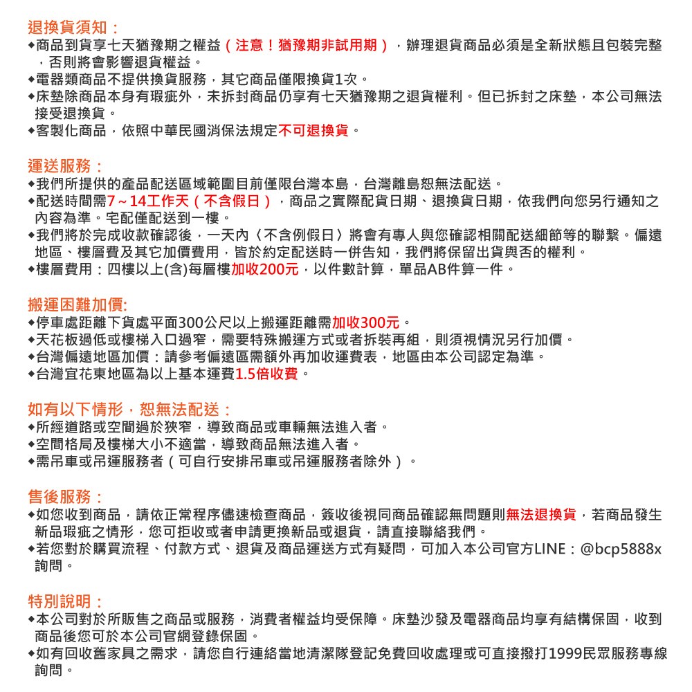 ● 7天鑑賞期非試用期,商品一經使用或組裝後,恕無法辦理退換貨。
