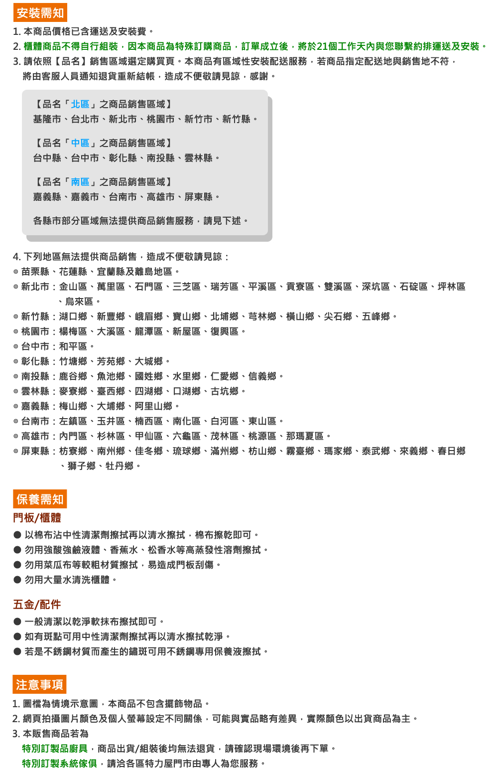 【本定規廚具相關規格】