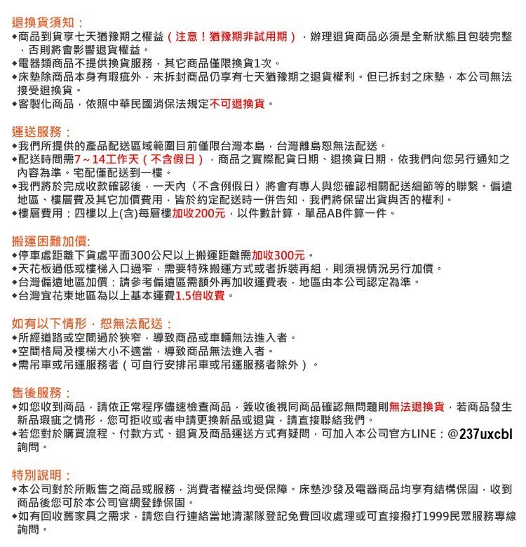 ※如需諮詢商品或運費相關問題,可加入本公司LINE@237uxcbl