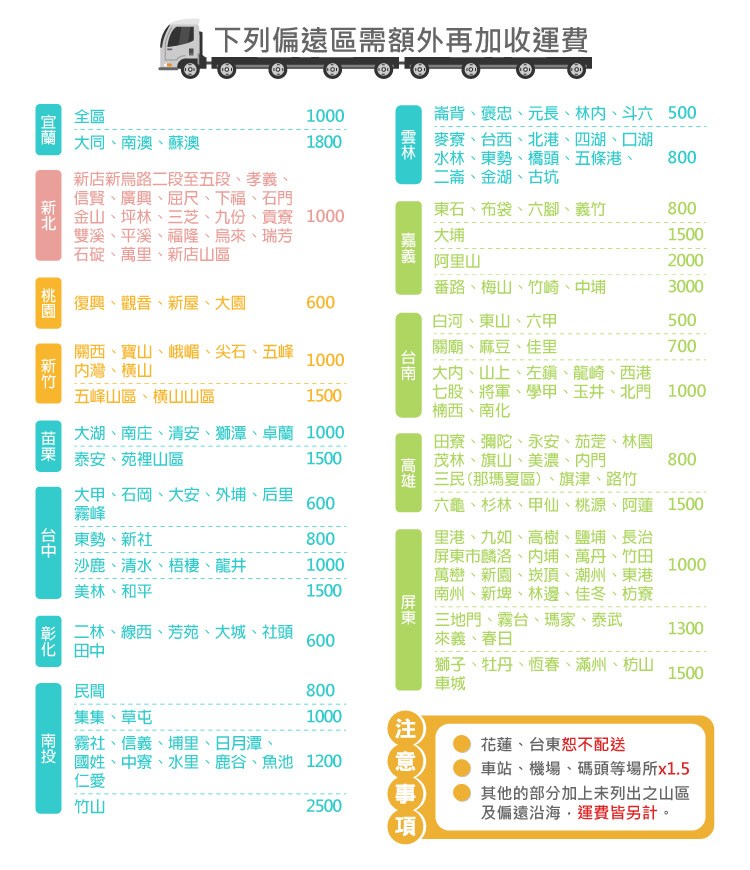 ※加價地區運費:如地址位於偏遠地區及山區、沿海運費另外加計。