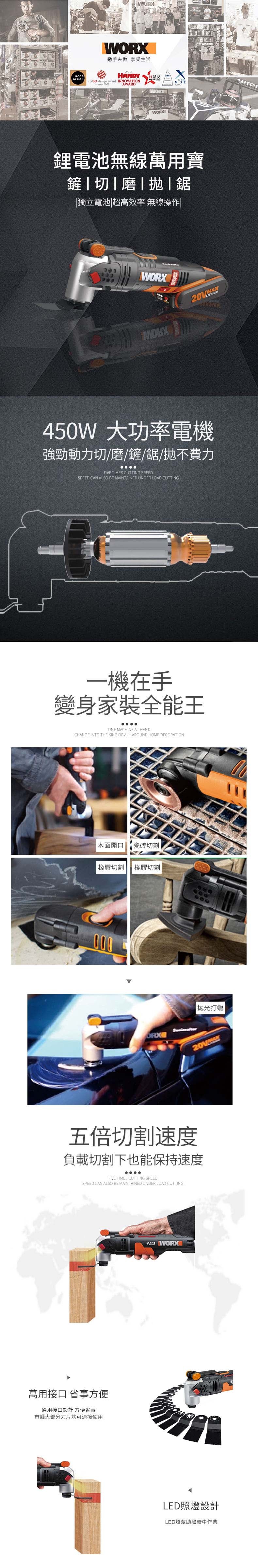 Worx 20V 無刷多功能切磨機2.0ah*2 WX693.1