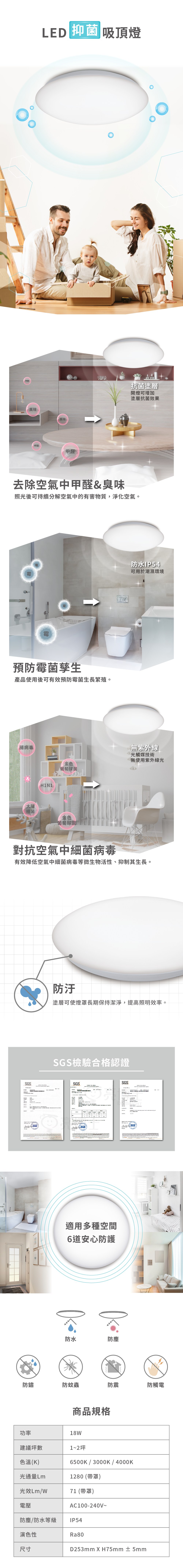 想打造溫馨舒適的居家光線氛圍,就從為不同空間挑選適合的燈具開始。我們提供多元功能與風格燈具,調光調色、遙控或聲控、IP防水係數等一應俱全,完美符合客廳、臥室、浴室、陽台等不同空間的照明需求。全系列商品皆通過CNS認證,讓全家人都能更便利安心!