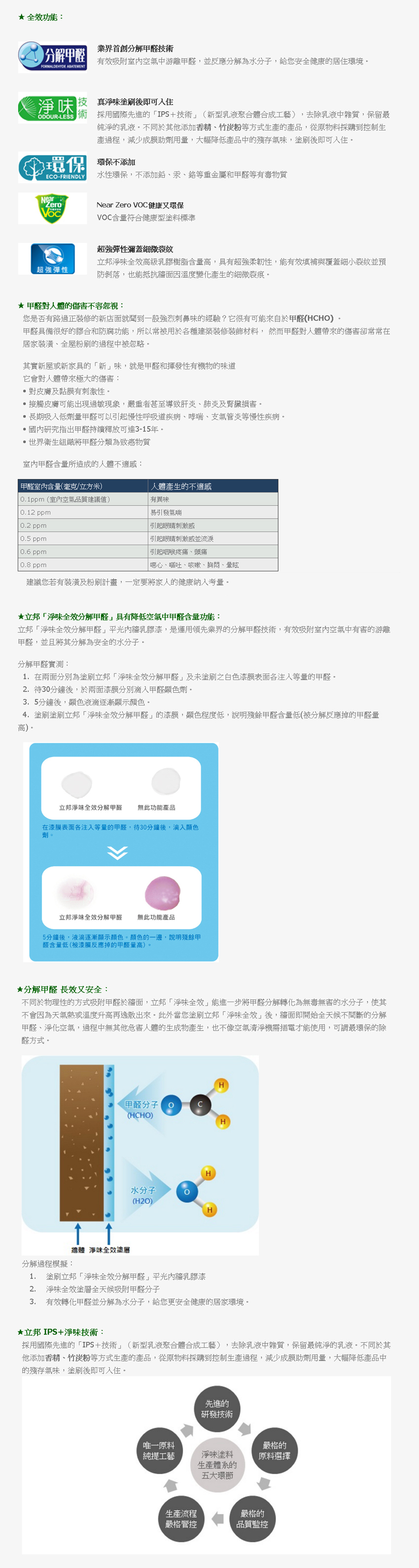 Nippon Paint立邦塗料秉持環保健康! 淨味無添加,分解空氣中游離甲醛,轉化為水分子排出。調色系列獨家採用最高級環保的ECO999淨味色漿,從裡到外給您淨味居家。全產品不添加鉛、汞及其他化合物,VOC(揮發性有機化合物)含量均符合嚴格的國際標準,更多產品獲得美國Greenguard與FDA食品接觸級認證,不只刷新生活,更守護全家真健康。
