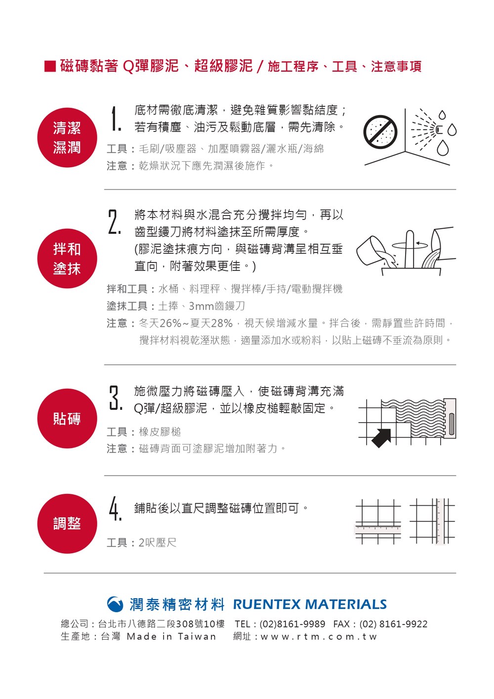 適合各類磁磚於打底材及輕隔間板牆面,高附著力需求黏著
