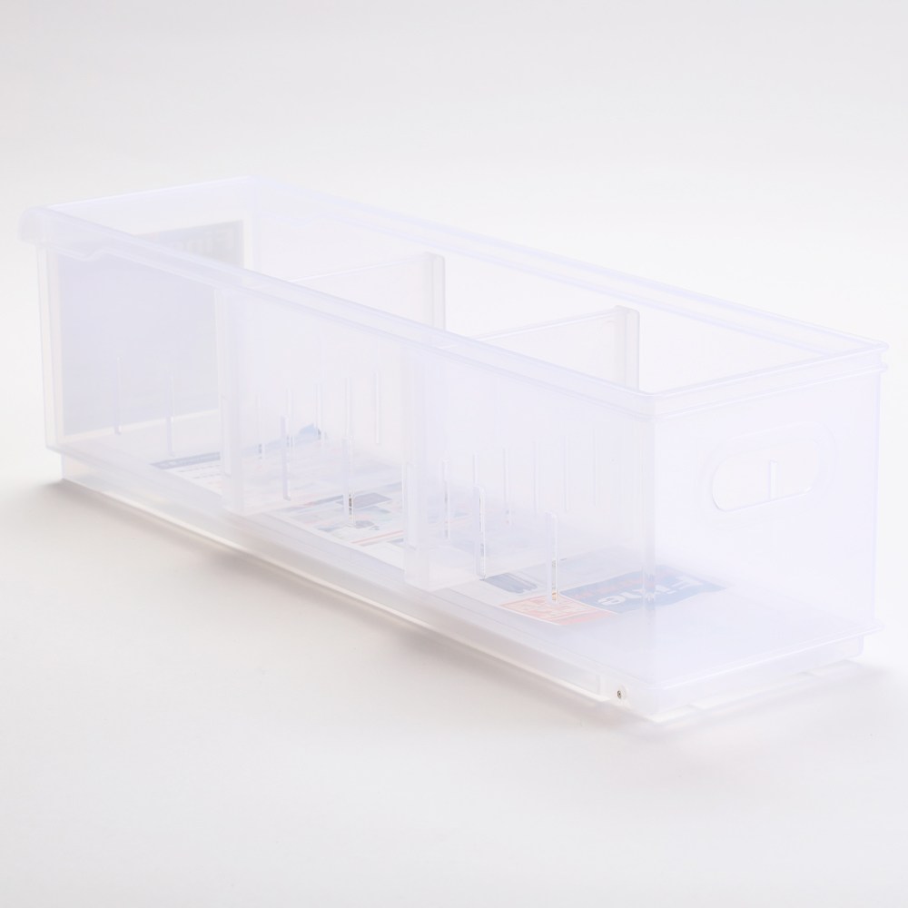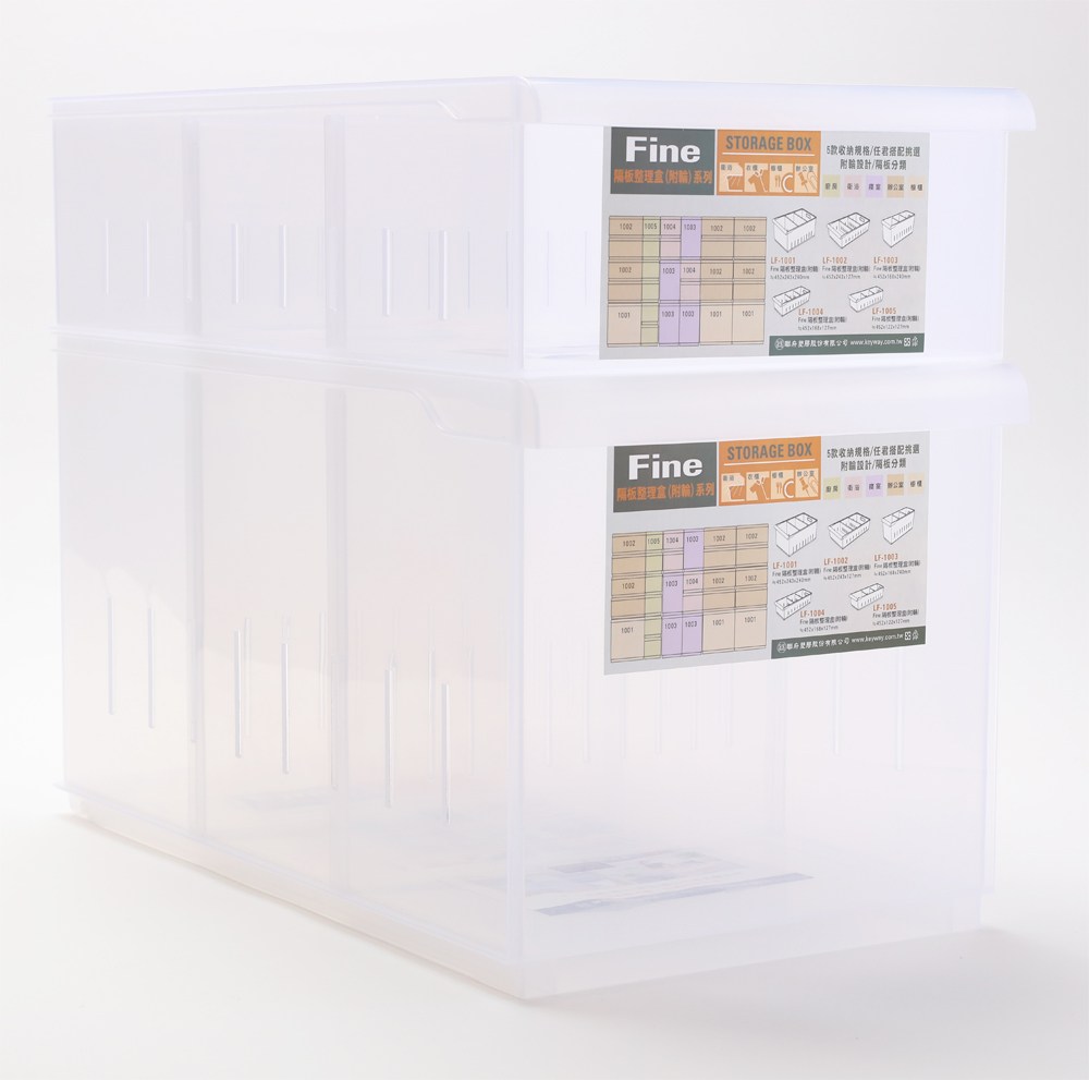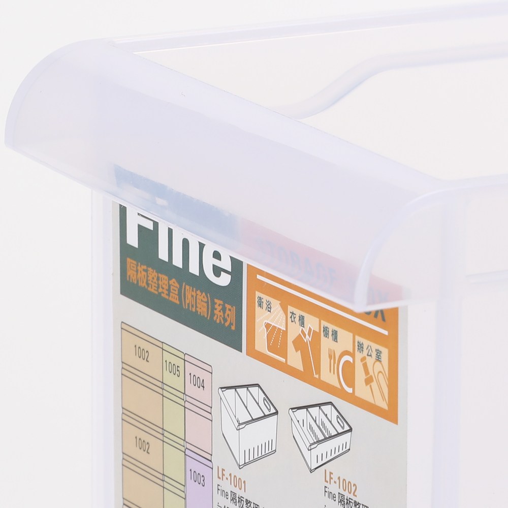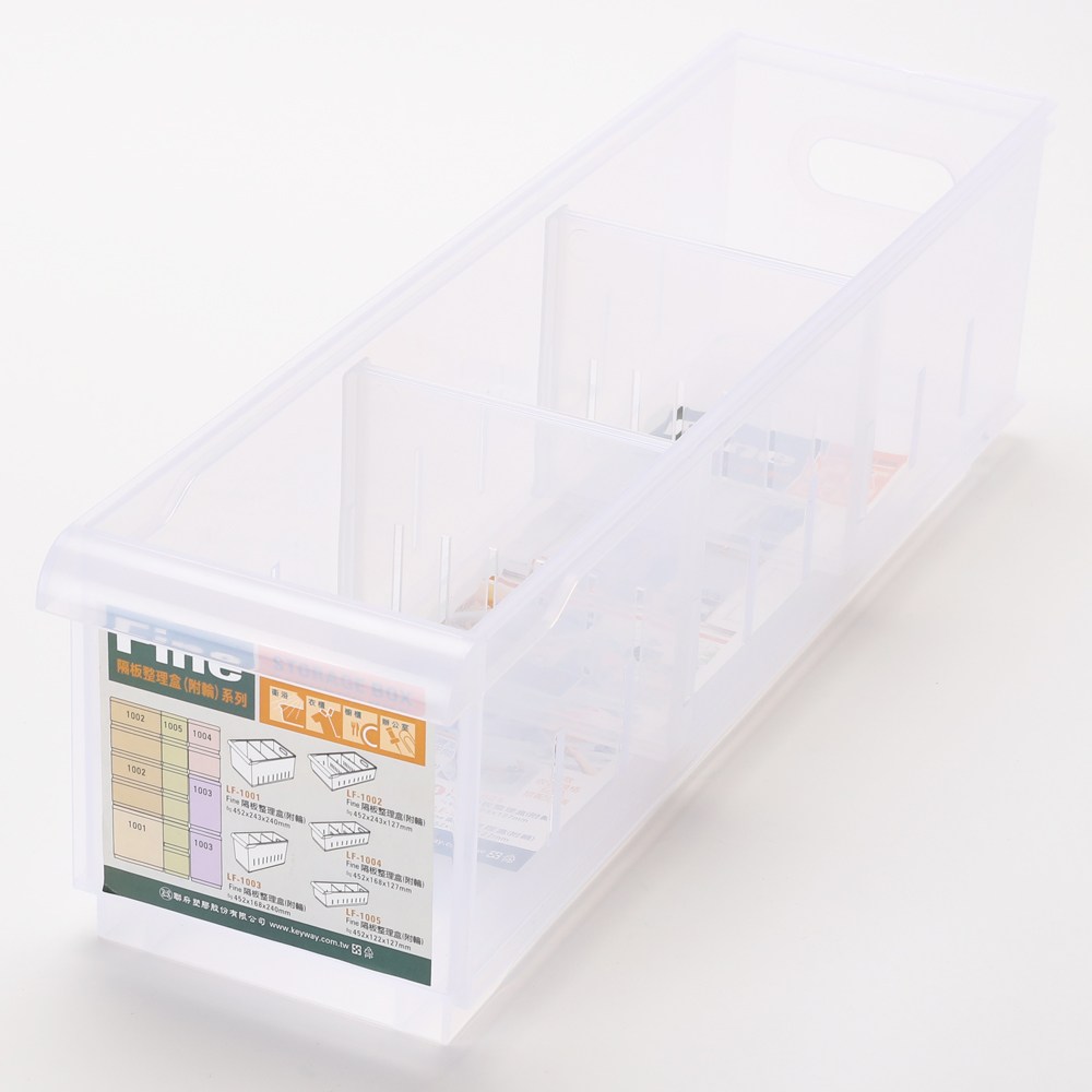 此款【FINE 隔板整理盒 附輪 淺型款 寬12.2cm 5.2L 型號LF1005】採用P.P(聚丙烯,Polypropylene)材質,耐用好用,堅固軔性高,兩隔板可各自拆卸調整,方便分類置物,適時調整,還可相互堆疊不佔空間,結構穩固,有效利用有限空間,不佔位置。