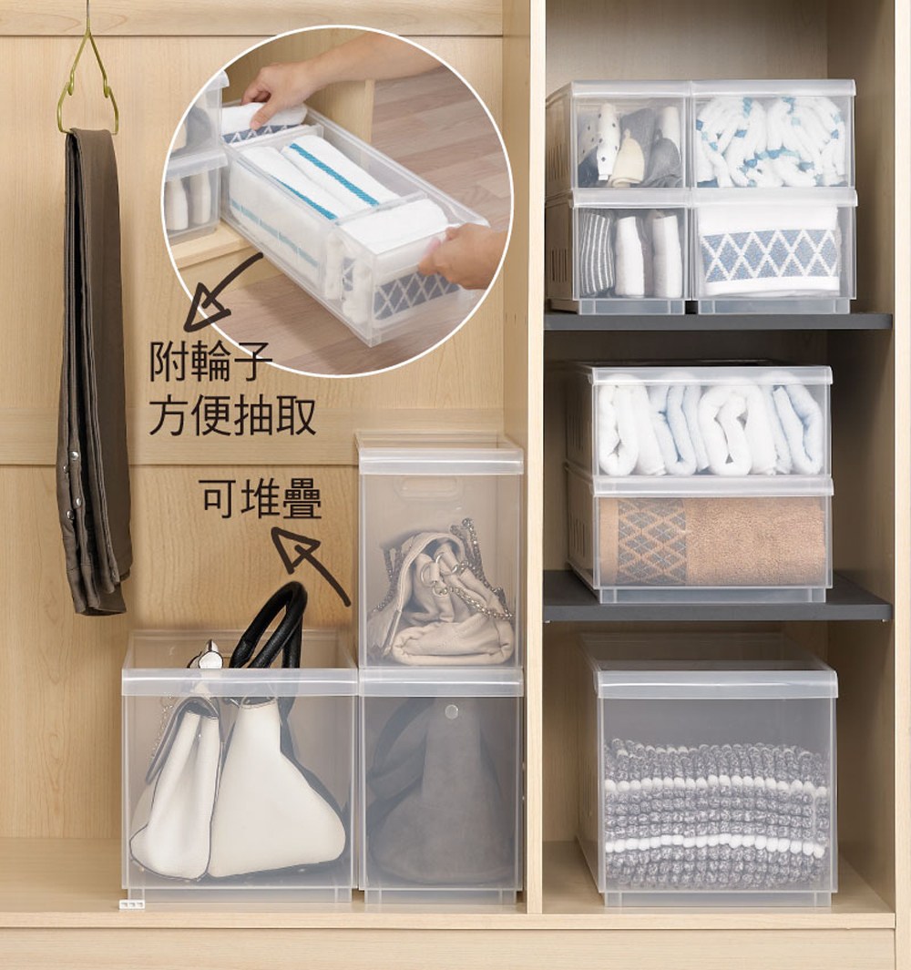 透明色系款 隔板可拆卸調整 隱藏附輪設計 系統性分類收納好幫手!!