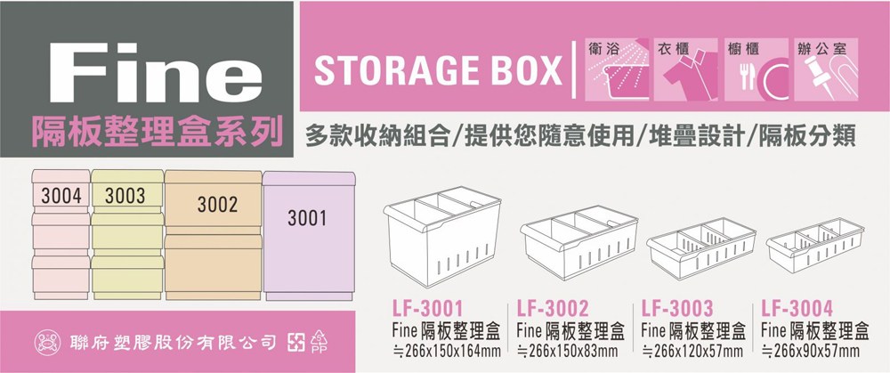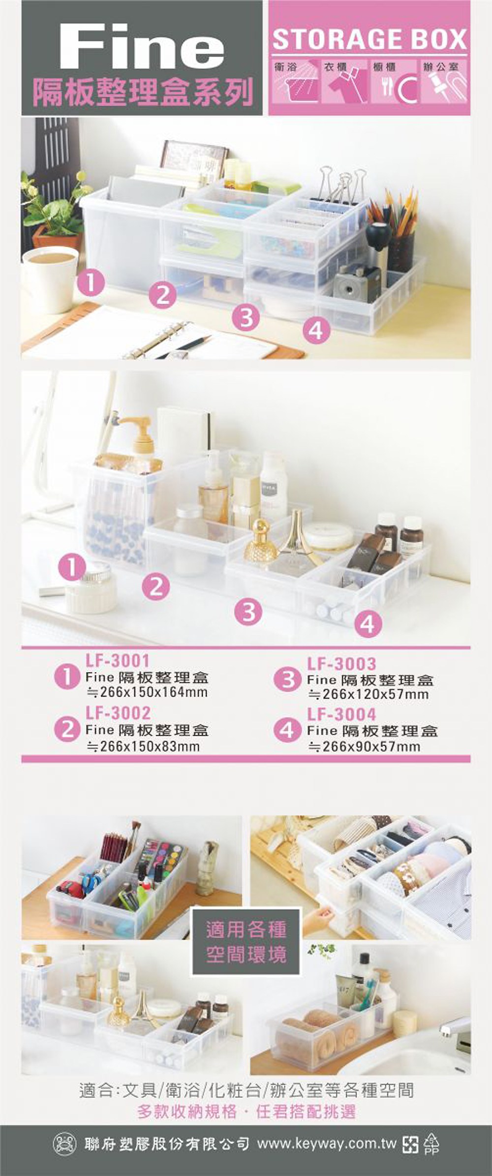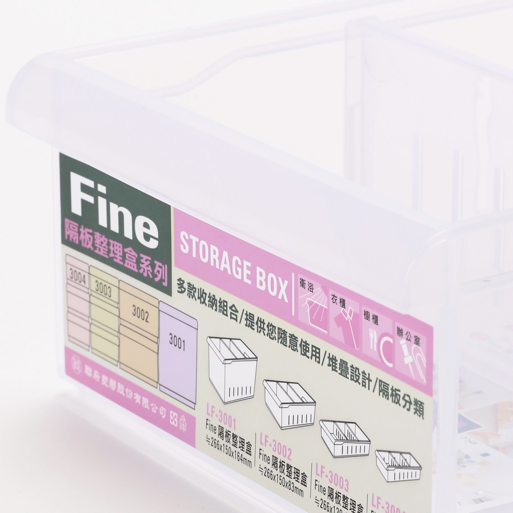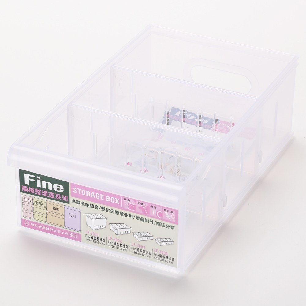 此款【FINE 隔板整理盒 淺型款 寬15cm 2.55L 型號LF3002】採用P.P(聚丙烯,Polypropylene)材質,耐用好用,堅固軔性高,兩隔板可各自拆卸調整,方便分類置物,適時調整,還可相互堆疊不佔空間,結構穩固,有效利用有限空間,不佔位置。