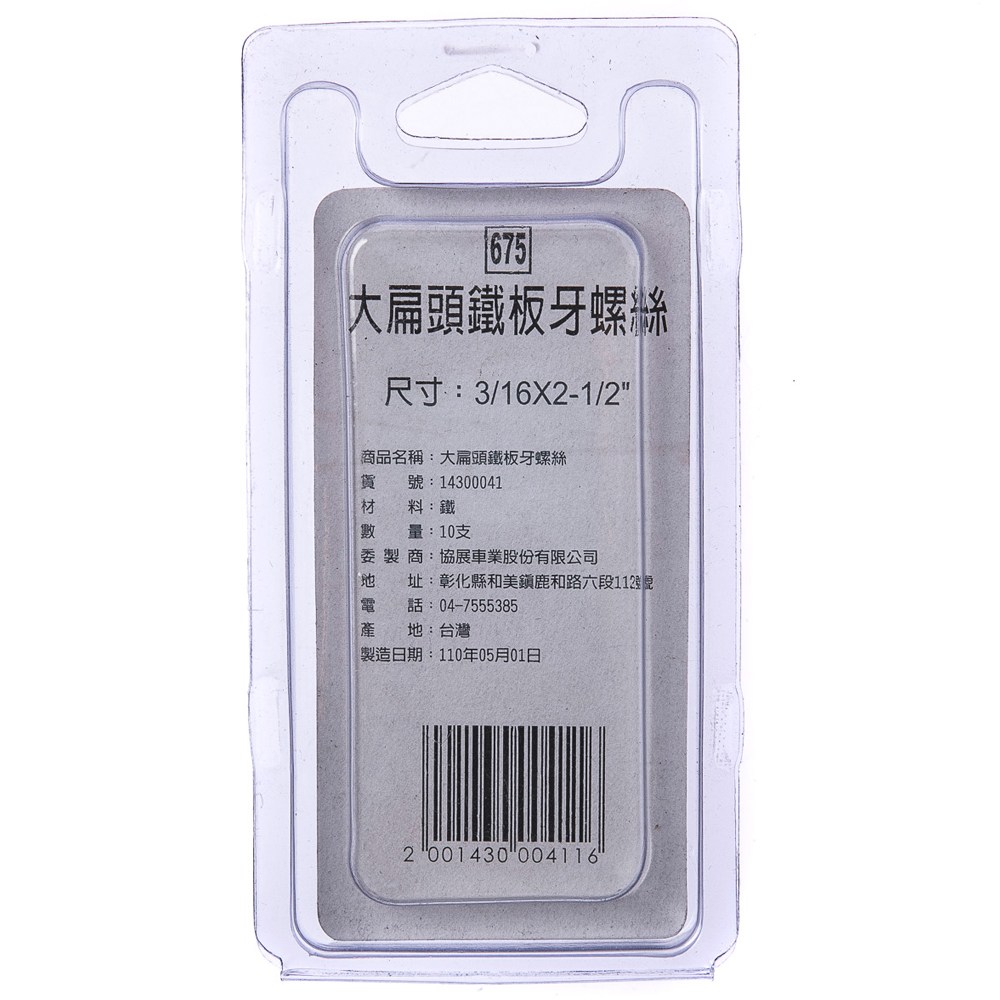 型號675 大扁頭鐵板牙螺絲 3/16X2-1/2" 10支