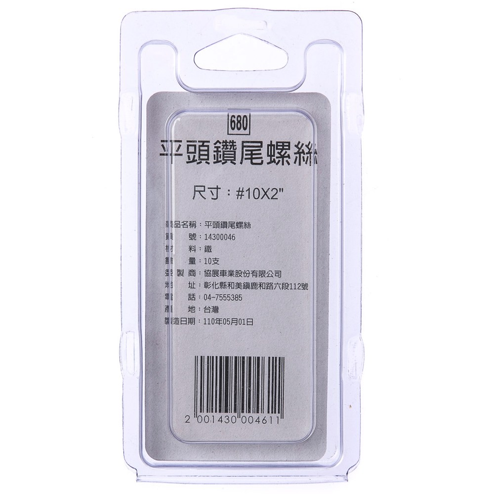 型號680 平頭鑽尾螺絲 #10X2" 10支