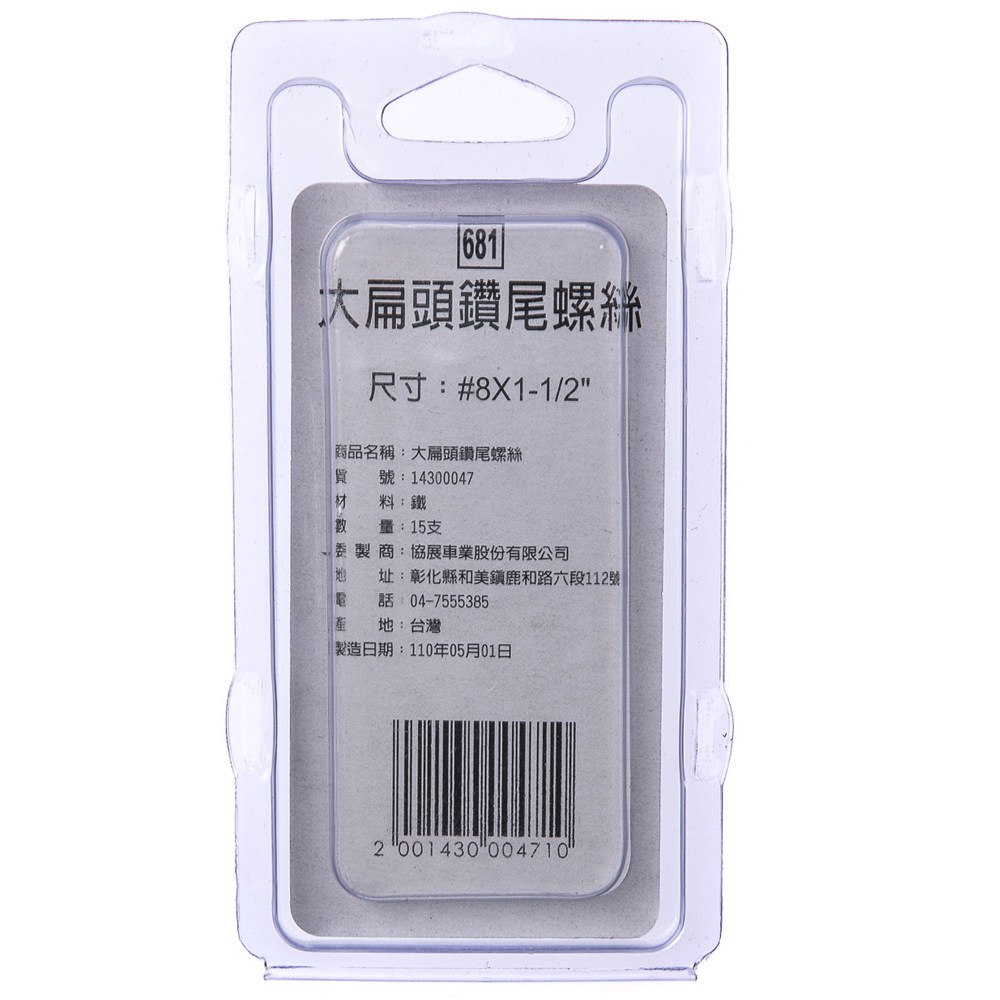 型號681 大扁頭鑽尾螺絲 #8X1-1/2" 15支