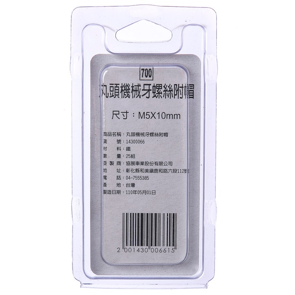 型號700 丸頭機械牙螺絲 附帽 M5X10mm 25組