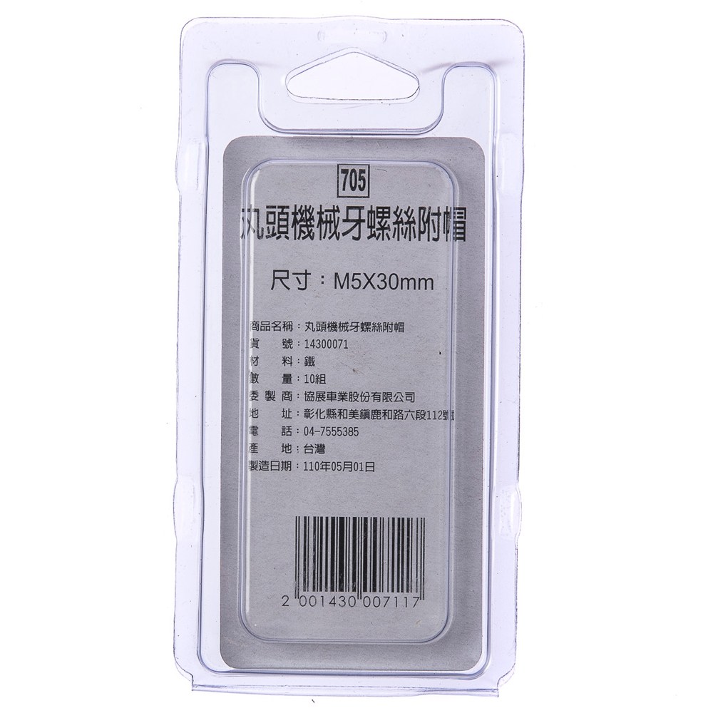 型號705 丸頭機械牙螺絲 附帽 M5X30mm 10組