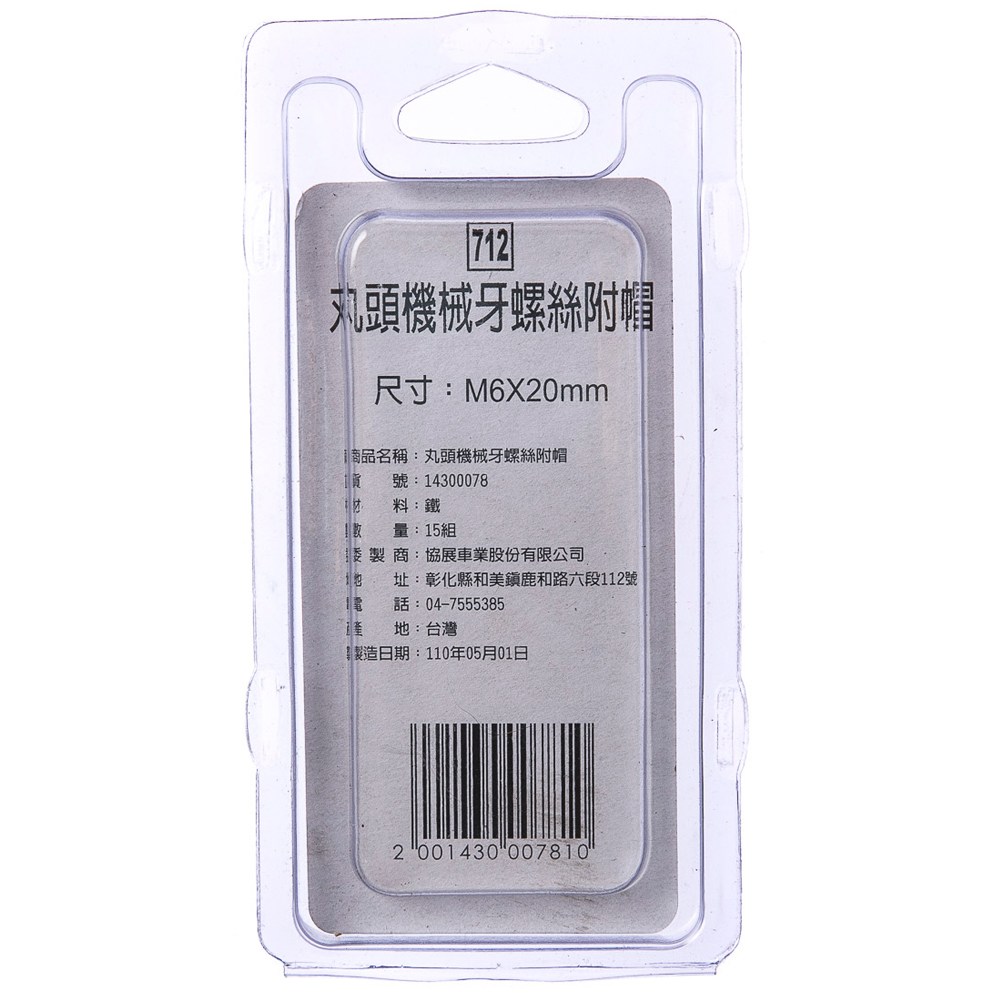 型號712 丸頭機械牙螺絲 附帽 M6X20mm 15組