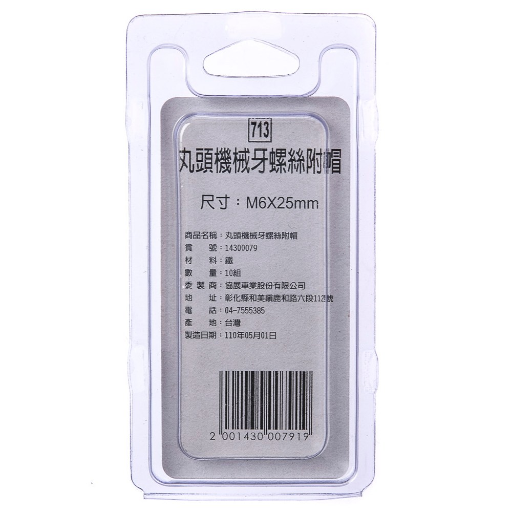 型號713 丸頭機械牙螺絲 附帽 M6X25mm 10組