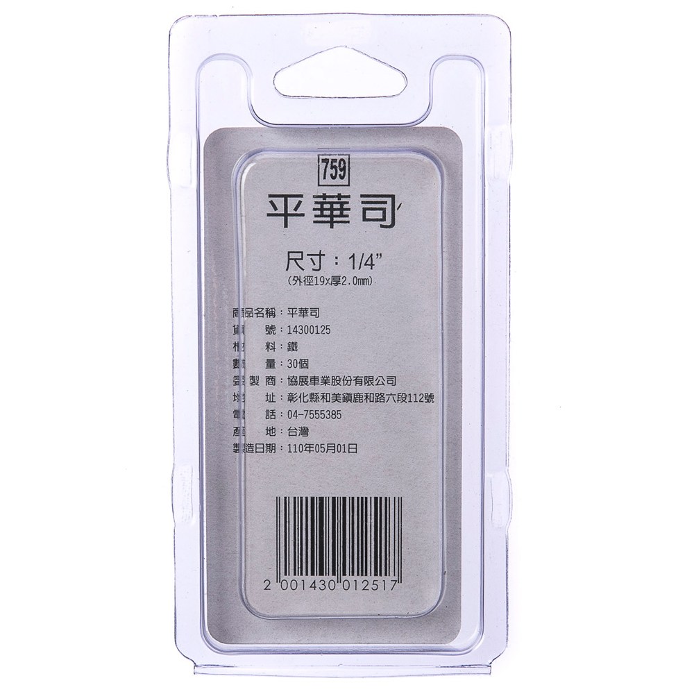 型號759 平華司 1/4" 外徑19x厚2.0mm 30個