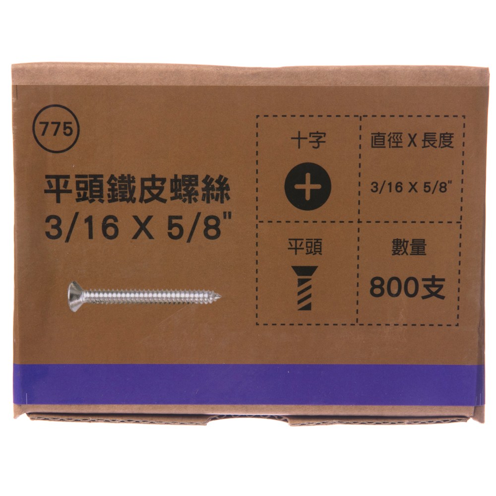 型號775 平頭鐵皮螺絲 3/16X5/8" 800支