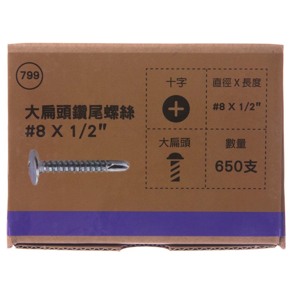 型號799 大扁頭鑽尾螺絲 #8X1/2" 650支