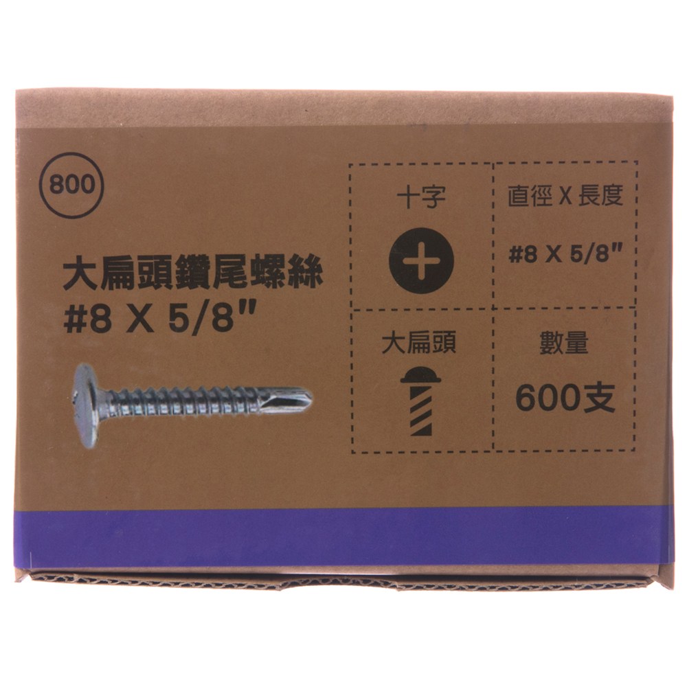 型號800 大扁頭鑽尾螺絲 #8X5/8" 600支