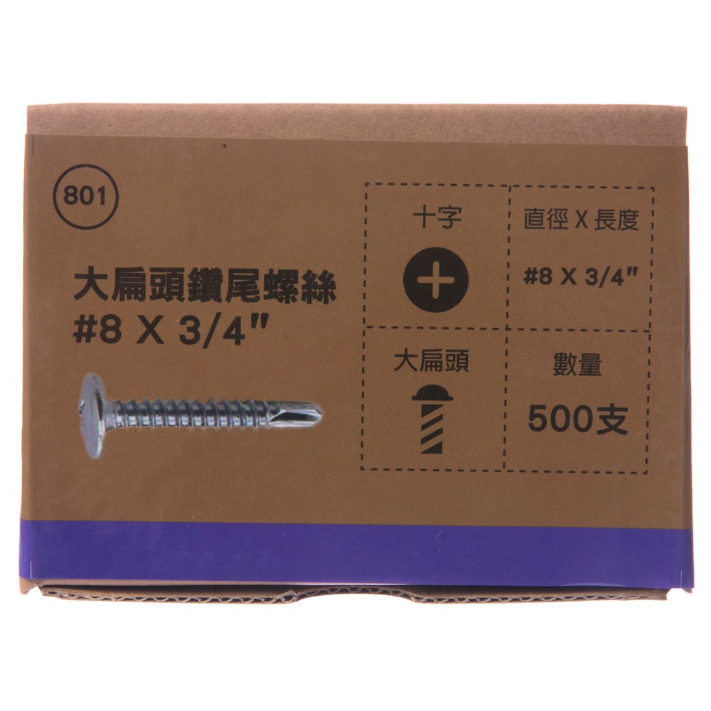801 大扁頭鑽尾螺絲 #8X3/4" 500支