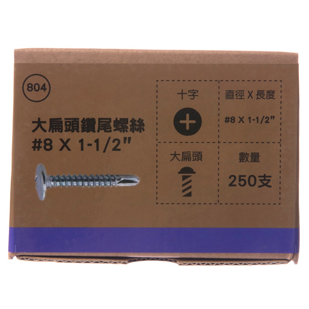 型號804 大扁頭鑽尾螺絲 #8X1-1/2" 250支