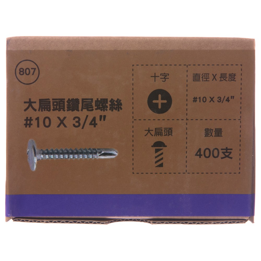 型號807 大扁頭鑽尾螺絲 #10X3/4" 400支
