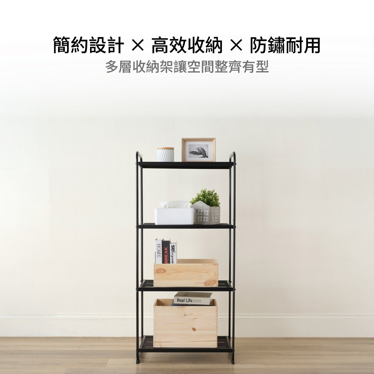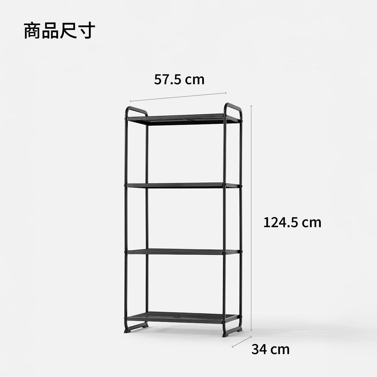 四層烤漆置物架 寬57.5x深34x高124.5公分 黑 黑耐重級荷重單層12公斤 書架 收納架 電器架 置物架
