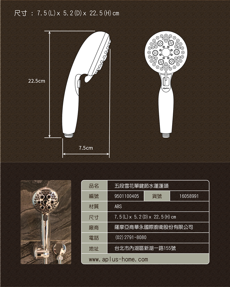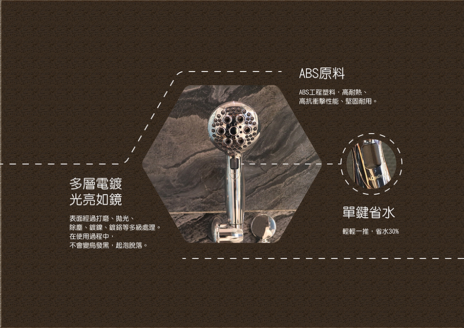 此款【 水美.五段雪花單鍵節水蓮蓬頭-2入 】具備五段水流切換,單手切換,方便使用;可依照個人需求做調整,讓您再家即可享受SPA