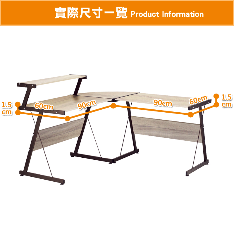 康迪仕 L型書桌 辦公桌 電腦桌 黃金橡木色