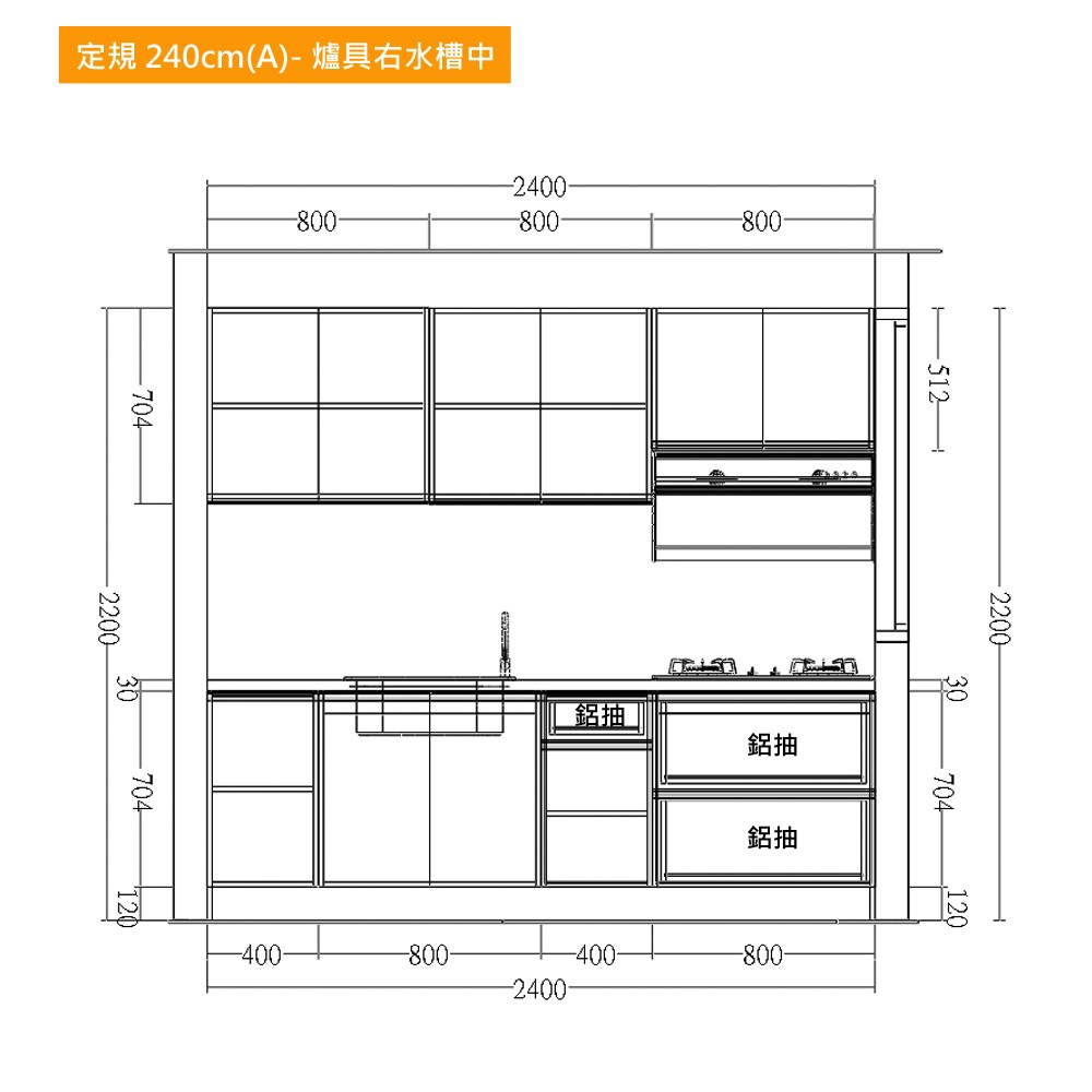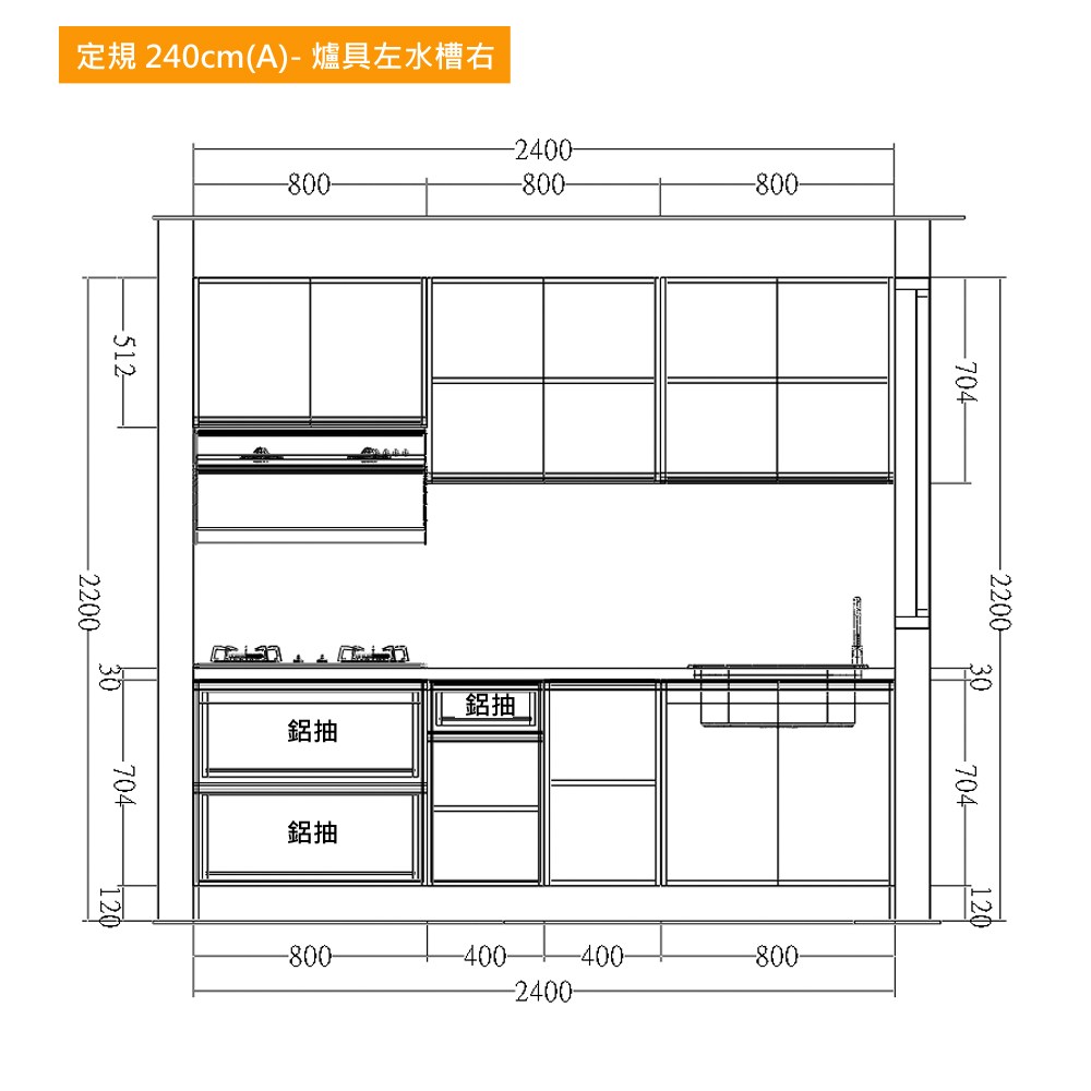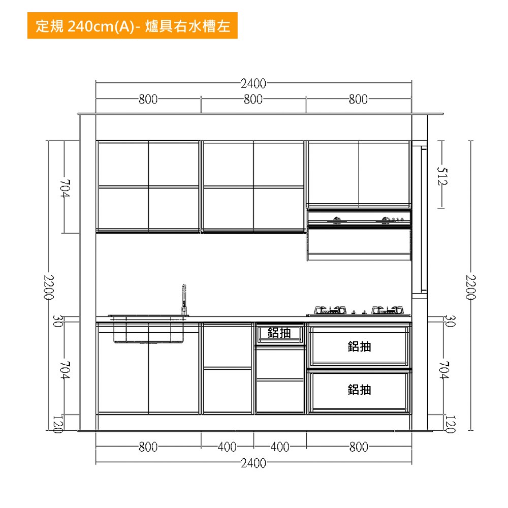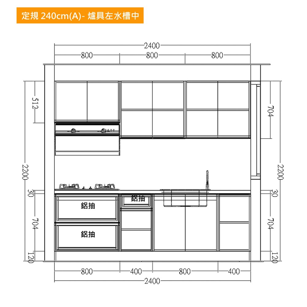 》中區-結烤定規廚具240CM(A)-上櫃G001白+下櫃G003淺灰(EC) ﹝商品頁連結﹞