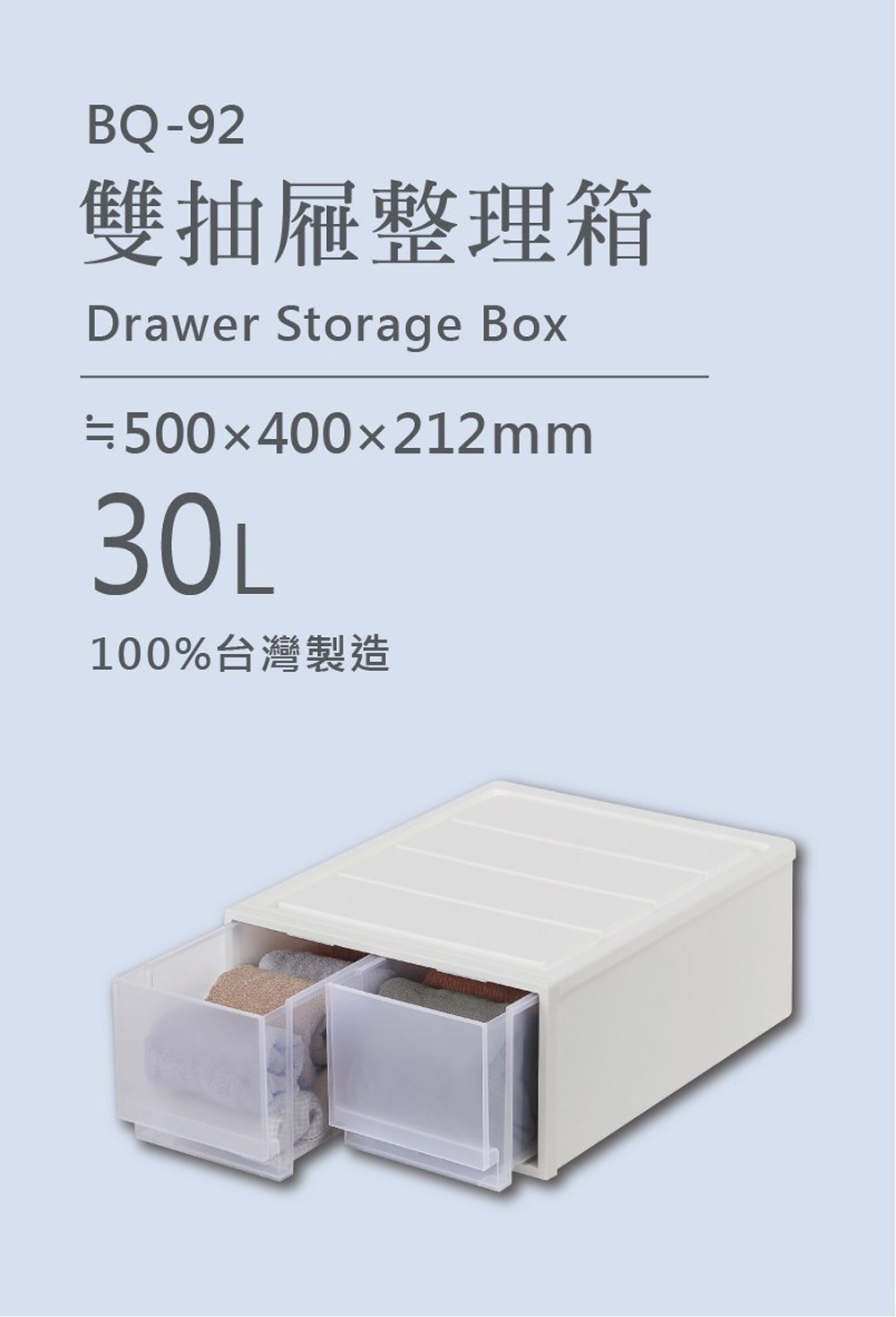 (組)BQ-92雙抽屜整理箱30L 40*50*21.2cm-2入