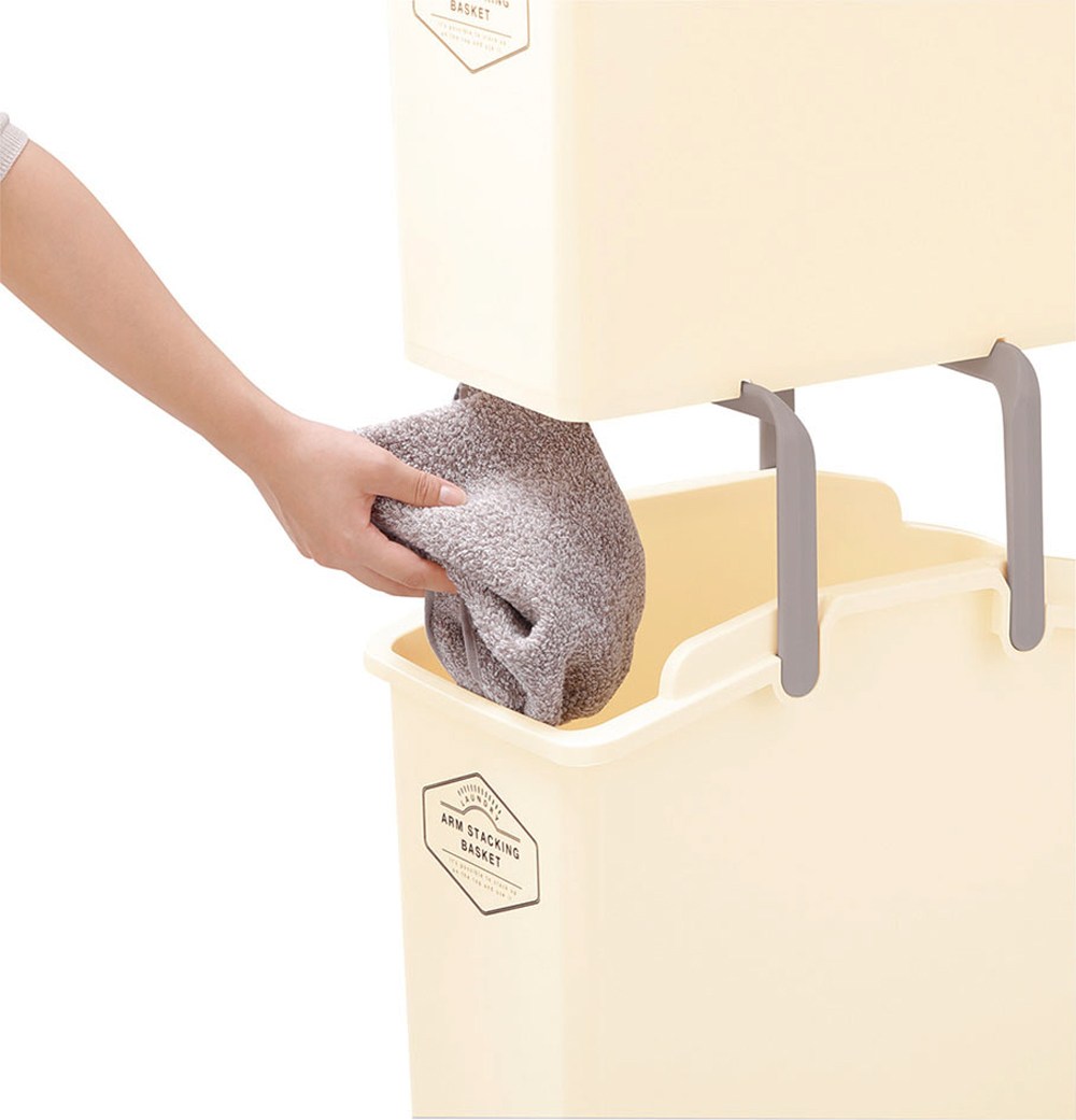 日本製可堆疊分類洗衣籃24L 象牙色