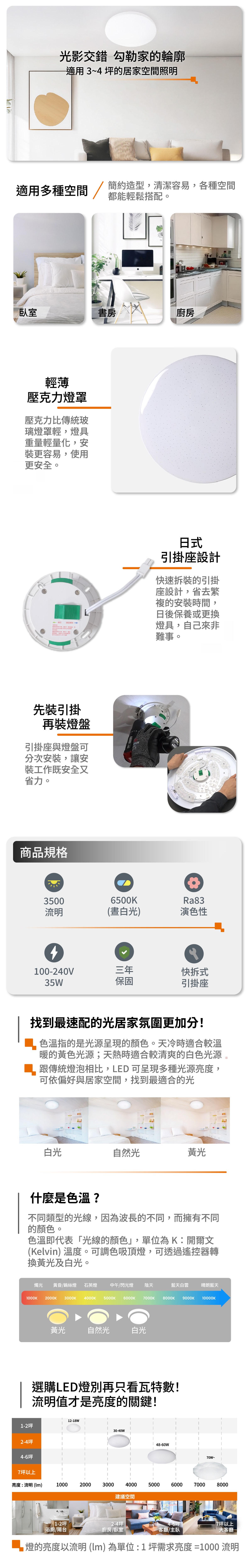 想打造溫馨舒適的居家光線氛圍,就從為不同空間挑選適合的燈具開始。我們提供多元功能與風格燈具,調光調色、遙控或聲控、IP防水係數等一應俱全,完美符合客廳、臥室、浴室、陽台等不同空間的照明需求。全系列商品皆通過CNS認證,讓全家人都能更便利安心!