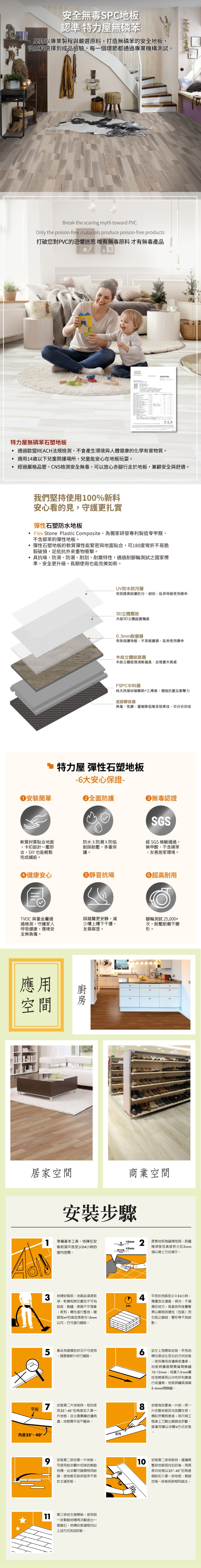 特力屋 防水卡扣塑膠地板 6x36吋 蜂蜜橡木0.5坪(DIY地板/塑膠地板/卡扣地板/防水地板/免釘免上膠)