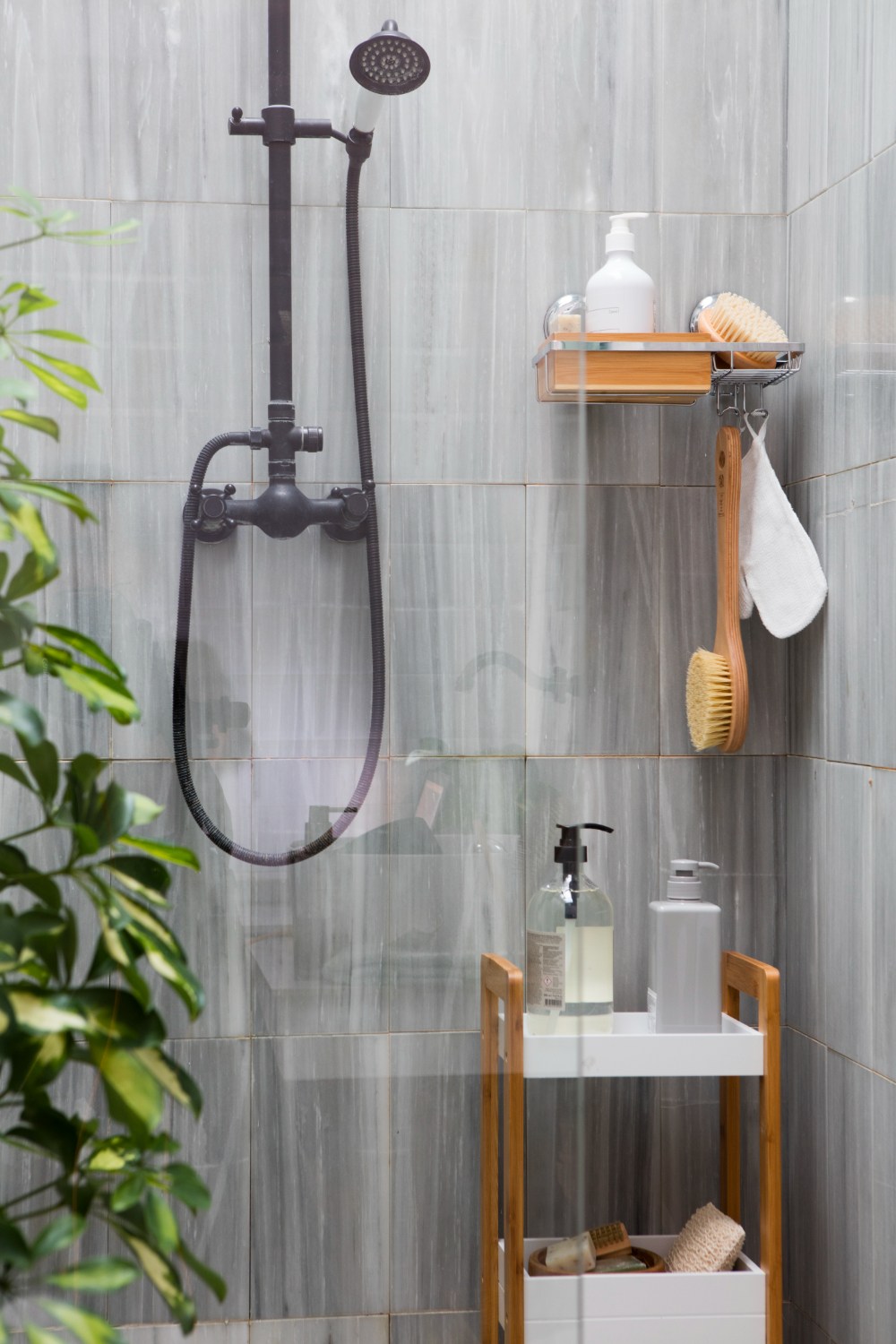 浴室置物架 摺疊架帶桿 50cm 灰色 1個