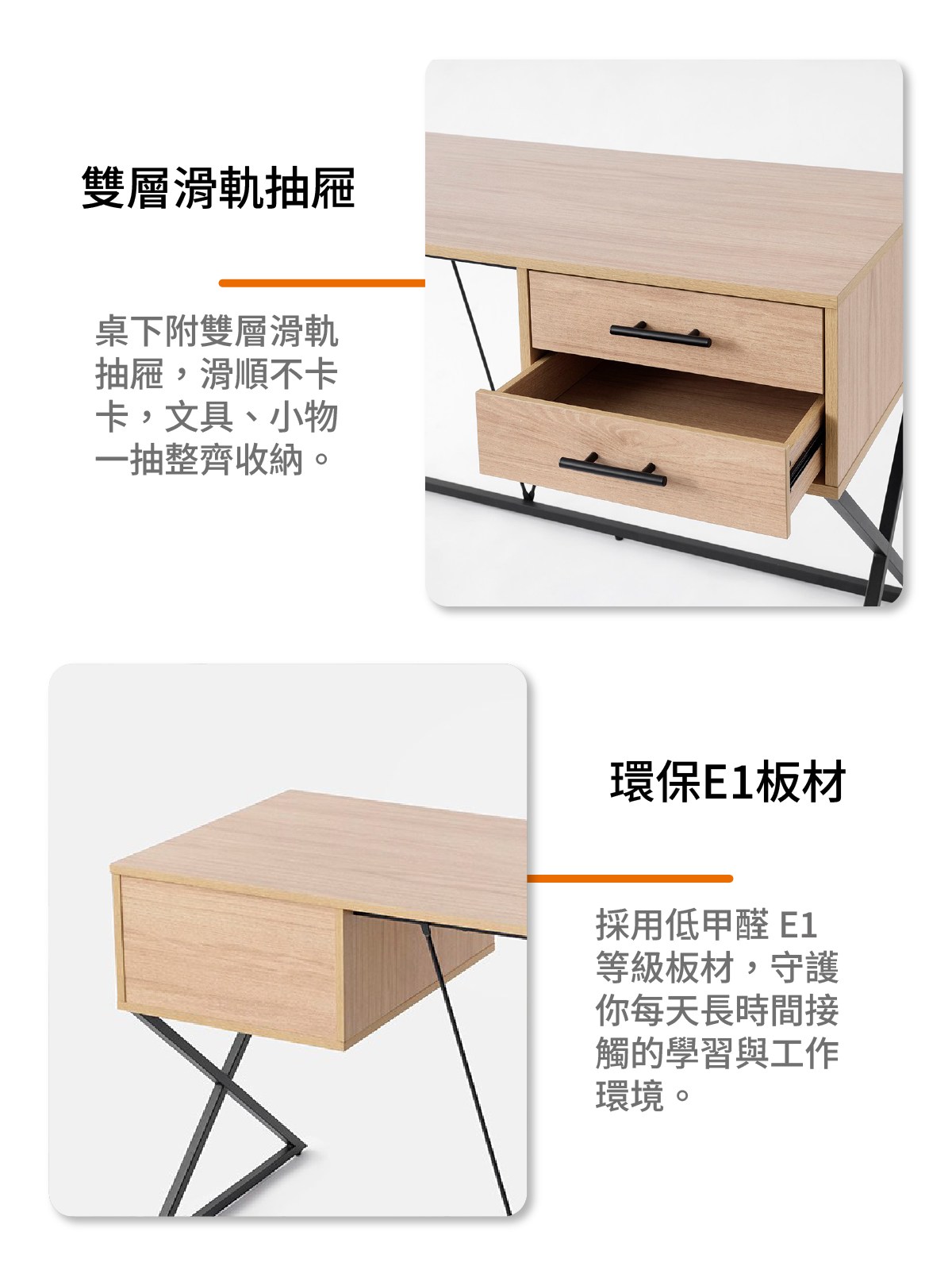 挑選適合的書桌,讓閱讀或工作都能更有效率。我們提供簡約設計到複合功能型的多樣款式,結合收納機能,可依需求及使用習慣挑選。特力屋自有品牌書桌皆符合國家標準CNS品質測試,採用符合法規標準E1等級板材,透過高標準嚴格把關,讓您的閱讀工作時光不僅舒適,更加安心。