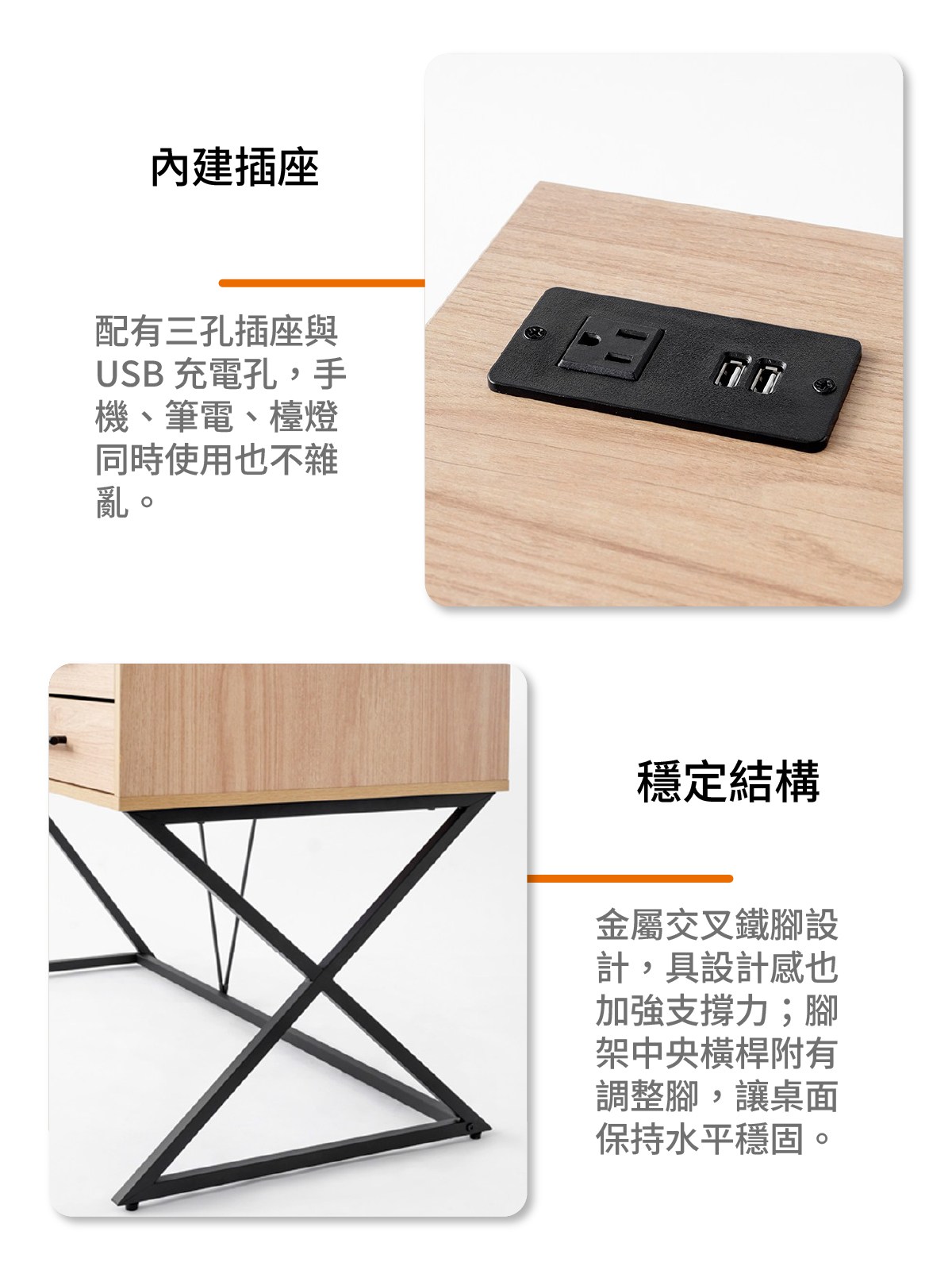 特力屋 X型鐵腳書桌 辦公桌 電腦桌 附USB插座