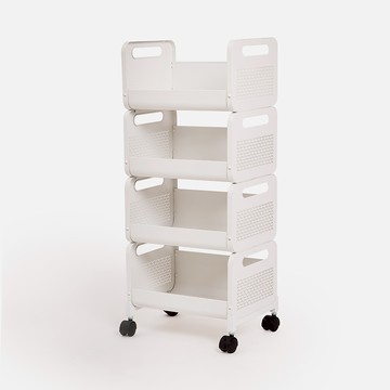 特力屋 斜口四格金屬活動置物架/推車 花漾白
