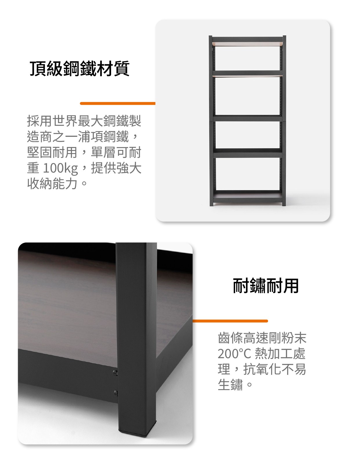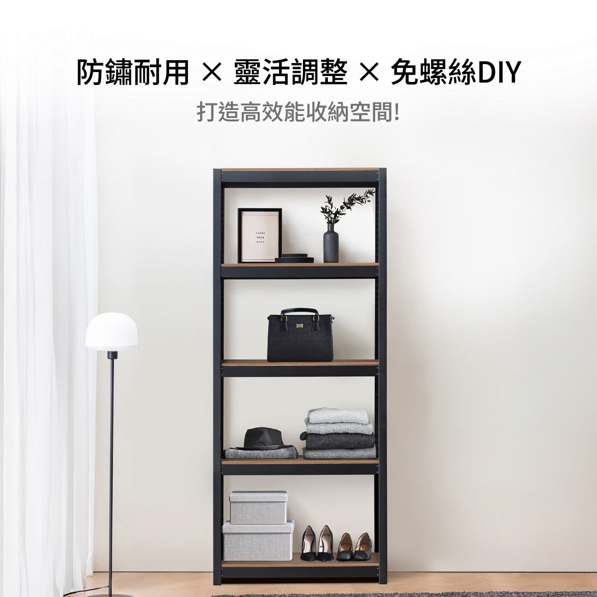 特力屋提供木質、鍍鉻或是塑鋼等多種不同材質的選擇,層架可延伸擴增,符合客廳、廚房、臥室、戶外等不同空間與風格的需求。特力屋提供的層架皆通過認證單位SGS的承重測試,確保層架的使用安全,簡易安裝即成為居家收納的好幫手。