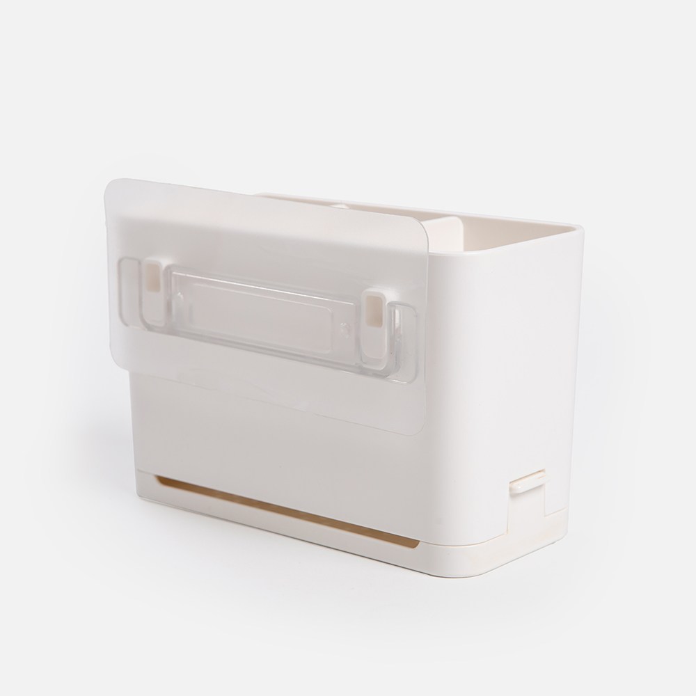 日本 oka PLYS base無痕貼壁掛式掀蓋塑膠袋收納盒 (約)寬20.5x深7x高22cm 潔白 1個