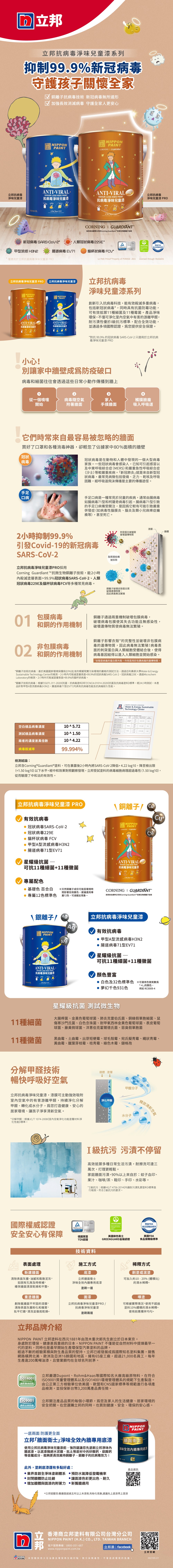 立邦 抗病毒淨味兒童漆,採高端銀離子技術,不止抗菌防霉,更可殺滅日常生活最容易被感染的A型流感病毒、腸道病毒 71型 EV71 。